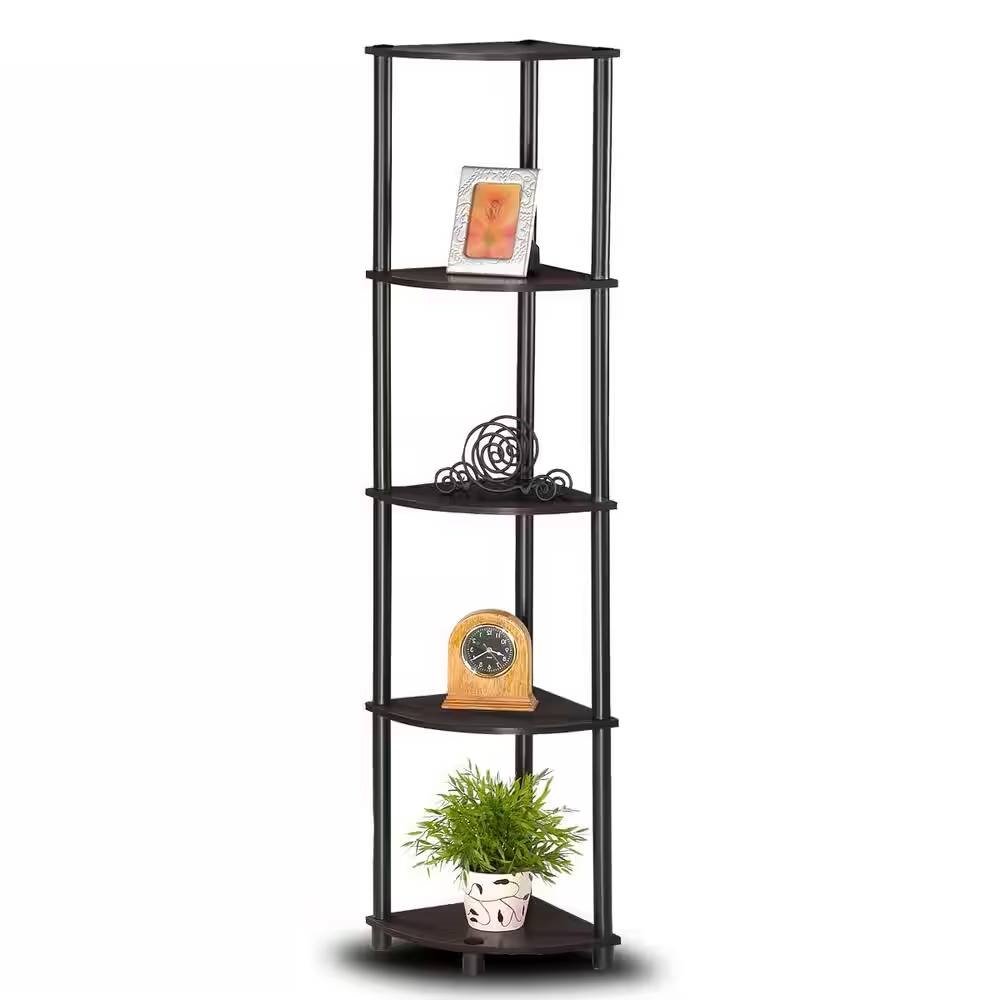 5-Shelf Modern Corner Bookcase in Espresso Black Wood Finish
